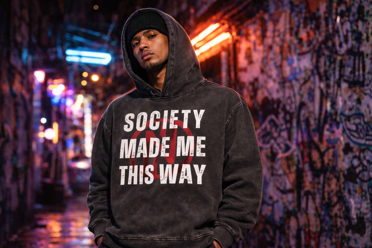 "Society" Vintage Washed Frayed-Hem Hoodie